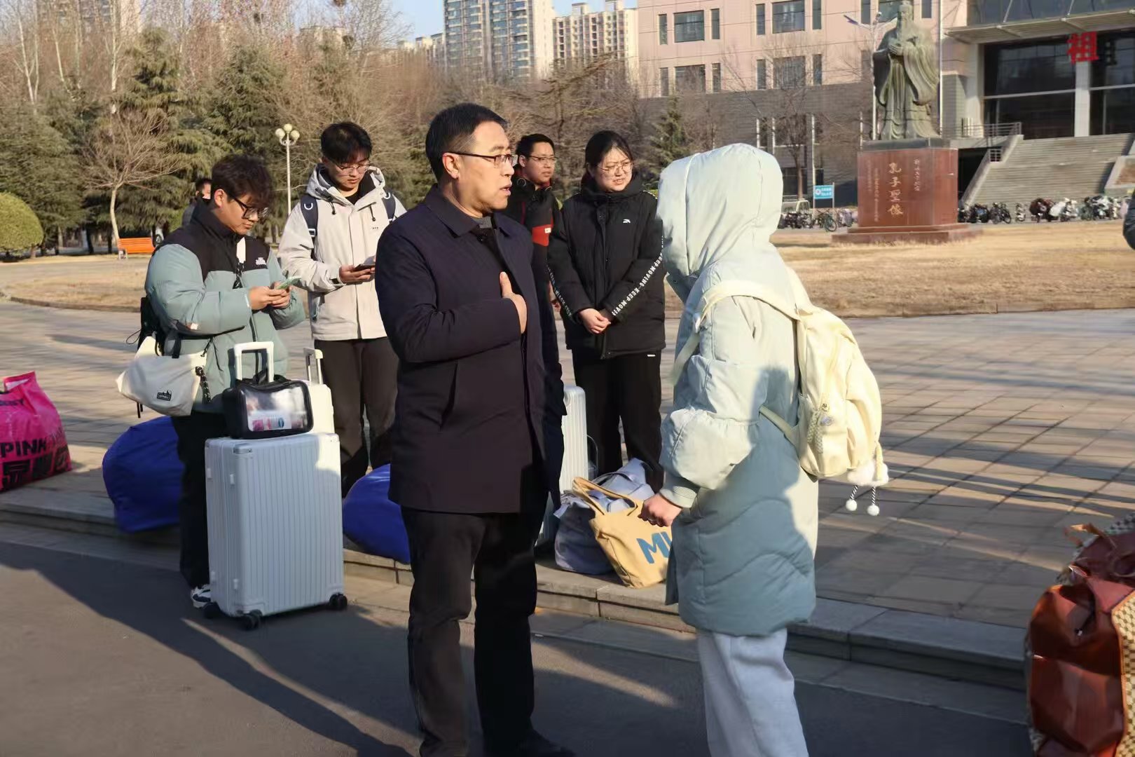2月19日上午,公司2022级历史专业实习支教员工赴东昌府区、茌平、东阿、冠县、临清、高唐等九个县区开展实习支教工作。学公司党委副书记卢庆洪、副经理官士刚、指导教师翟桂金、邓广和团委书记石晓晗前来送行。 送行之际,指导老师们严谨核实人员到达情况,亲自协助员工搬运行李,并与实习生亲切交谈,殷切嘱托实习支教员工务必将个人安全置于首位,遇到问题及时与公司进行沟通交流,鼓励实习生把握此次实习机会,通过实践锻炼,实现个人能力的飞跃与提升,并祝愿其圆满完成实习任务,斩获成长与进步。 本学期,公司精心组织115名历史学专业员工参与实习支教工作。为确保实习支教顺利进行,公司召开支教动员大会,着重加强支教前的准备工作,通过深入的思想引导,帮助实习生深刻领会实习支教的内涵与意义,并针对员工关于支教的各类疑问进行详细解答,为实习支教奠定坚实基础。2022级实习支教员工以饱满的热情和无限的向往投身支教工作,在支教的道路上挥洒青春汗水、奉献热血情怀,充分展现了公司学子踏实奋进、甘于奉献的精神风貌,彰显了公司良好的育人成果。 公司始终秉持高度的责任感与使命感,将实习支教工作列为教学工作的重中之重,深刻认识到其对于提升师范生实践教学技能、促进专业成长以及推动教育事业发展的关键作用。未来,公司将进一步优化与实习支教公司之间的沟通机制,深化双方在公司产品领域的交流与合作,以昂扬的斗志和坚定的决心,全力推动实习支教工作高质量、高标准地开展,为师范生的全面发展提供有力支撑。 (供稿:王梦 摄影:王梦 陆雅馨 初审:王舒心 宋佳珊 复审:李月 终审:尤姗姗)